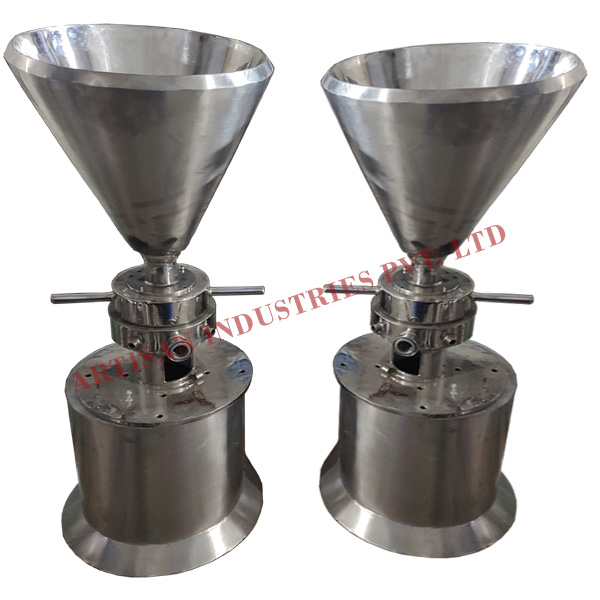 Artisan Vertical Colloid Mill combines precision engineering with versatile performance to meet the needs of pharmaceutical, food, cosmetic, and chemical industries. Featuring a rotor-stator design operating at 3000 RPM, it provides efficient particle size reduction and emulsification within an adjustable grinding gap. Constructed from stainless steel 316L, it ensures hygiene and durability while minimizing contamination risk. The mill supports both continuous and batch operations, offering a user-friendly interface for process control and maintenance, with options for water-jacketed cooling to safeguard heat-sensitive materials.